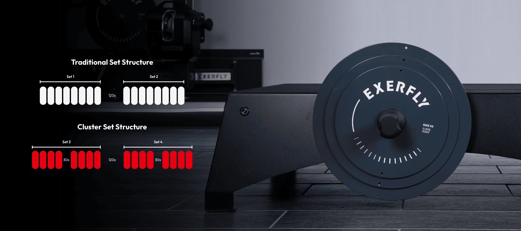 Cluster sets may be a valuable programming strategy in flywheel training, particularly when the goal is sustaining velocity and power output across sets. Emerging research, alongside Exerfly App data, suggests that short intra-set rest periods can help maintain more consistent concentric performance, which directly influences eccentric resistance. For coaches aiming to maximize output while managing fatigue, cluster configurations offer a practical and data-supported option within flywheel training.
